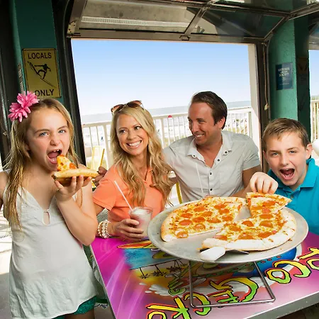 The Sandbar Hotel features both an oceanfront building and a main inland structure, with colorful rooms equipped with essential amenities. The hotel is pet-friendly, allowing furry guests to grace the beach alongside their owners. Facilities include outdoor pools, hot tubs, and a 38.1 m lazy river for guests to enjoy. Close to Family Kingdom Amusement Park, your vacation experience can be filled with fun activities tailored for all family members.